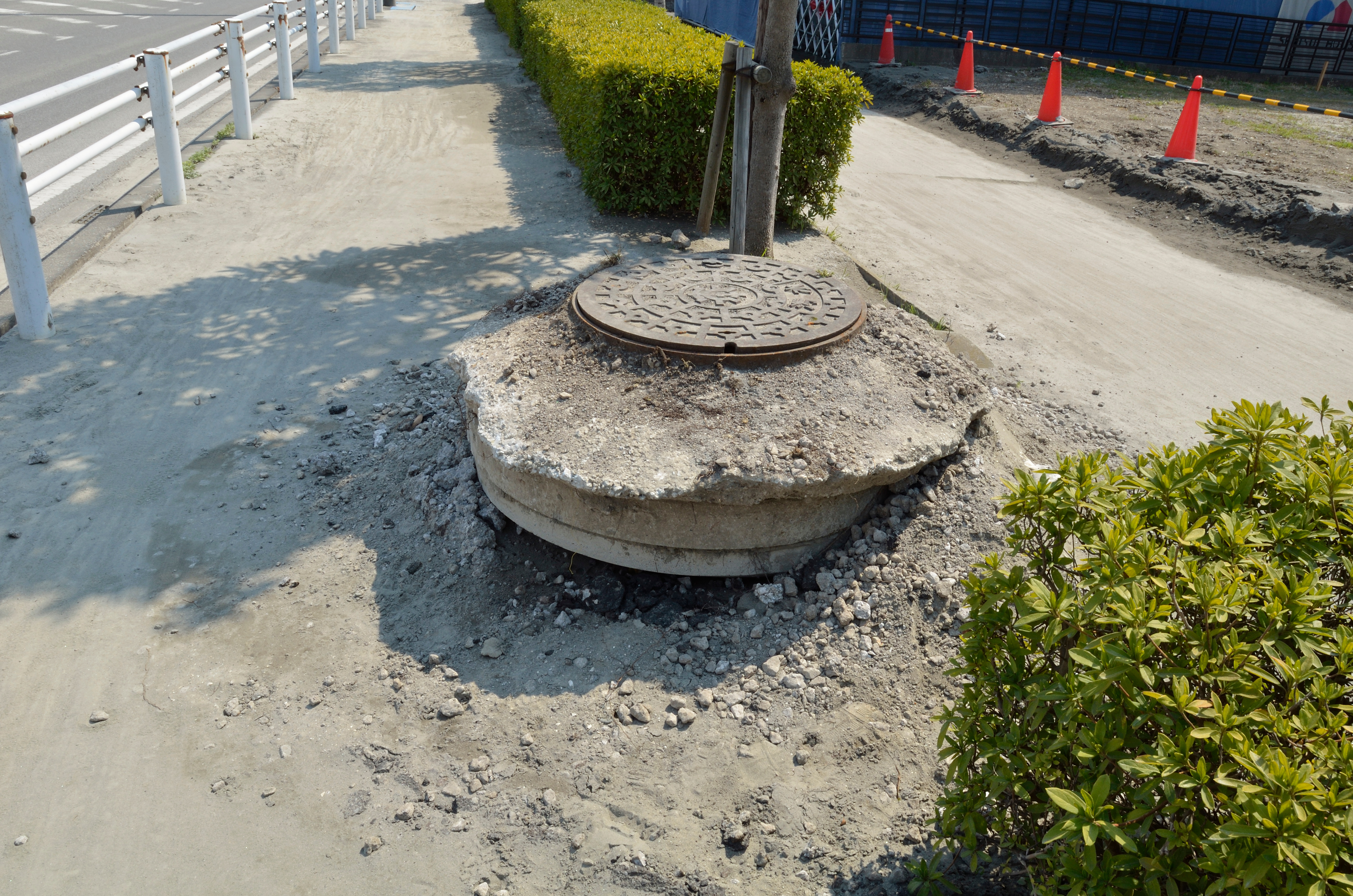 液状化は、地震発生時に起こる可能性がある被害です。地盤が液状化すると、地盤沈下や噴砂、陥没が起こり、建物が傾斜してしまう恐れがあります。また、マンホールや埋設管などの 浮き上がりの被害が発生することもあります。